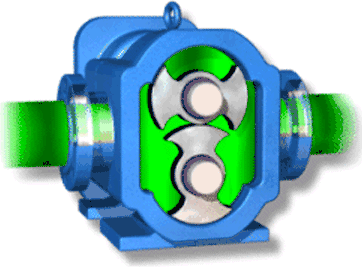 雙螺桿泵與齒輪泵十分相似,一個(gè)螺桿轉(zhuǎn)動(dòng),帶動(dòng)另一個(gè)螺桿,液體被攔截在嚙合室內(nèi),沿桿軸方向推進(jìn),然后被擠向中央排出。