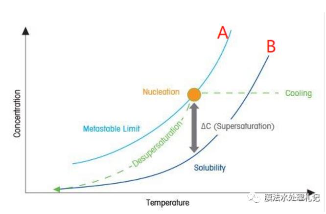 曲線a和b之間其實還存在一個介穩區,溶液也處于過飽和狀態,但是由于無法自發形成晶核,所以還不會產生晶體。