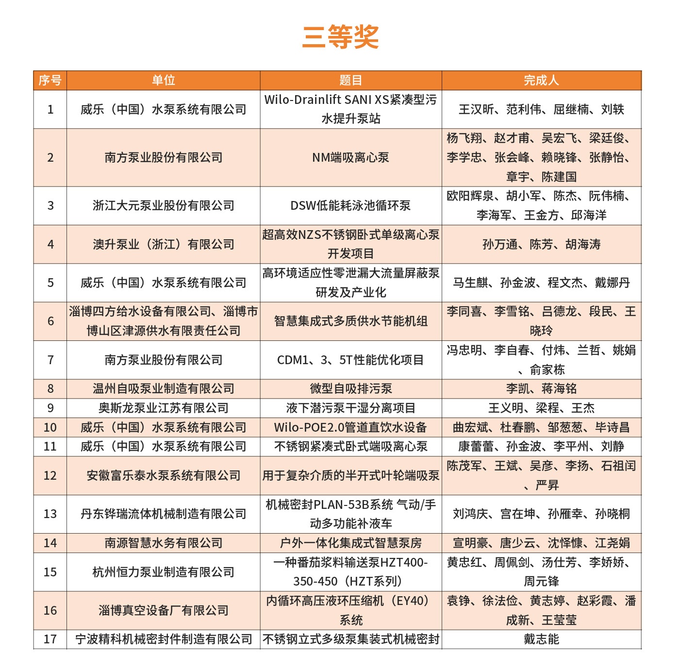 2025年第四屆FLOWTECH CHINA全國流體裝備技術(shù)創(chuàng)新獎經(jīng)過10位嘉賓的專業(yè)評審,共評選出了威樂、南方、利歐、新界、白云、沃爾姆、澳升等在內(nèi)的一、二、三等獎,凱泉泵業(yè)王斌、南方泵業(yè)蘭哲、利歐集團顏土富等32位個人獎,現(xiàn)予以公示,公示截止日期為2025年5月22日。